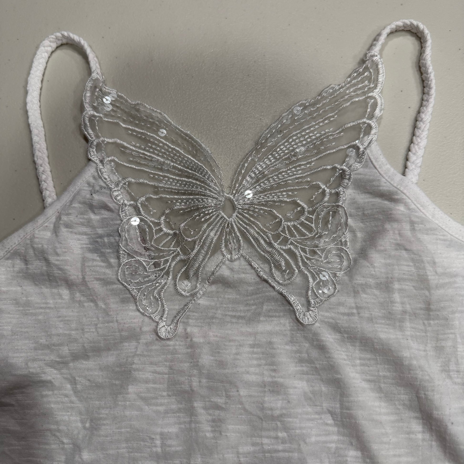 (M/L) 2000s Butterfly Sequin Mesh Detailed Top