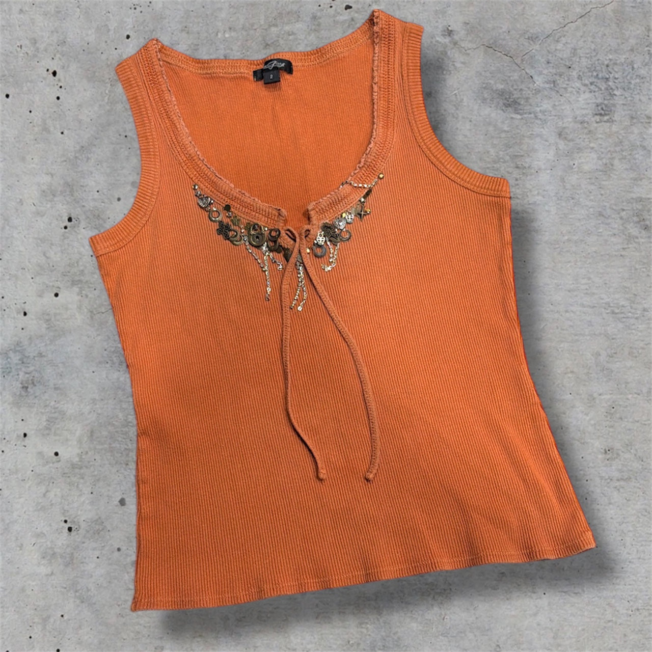 (M) vintage charm necklace orange tank