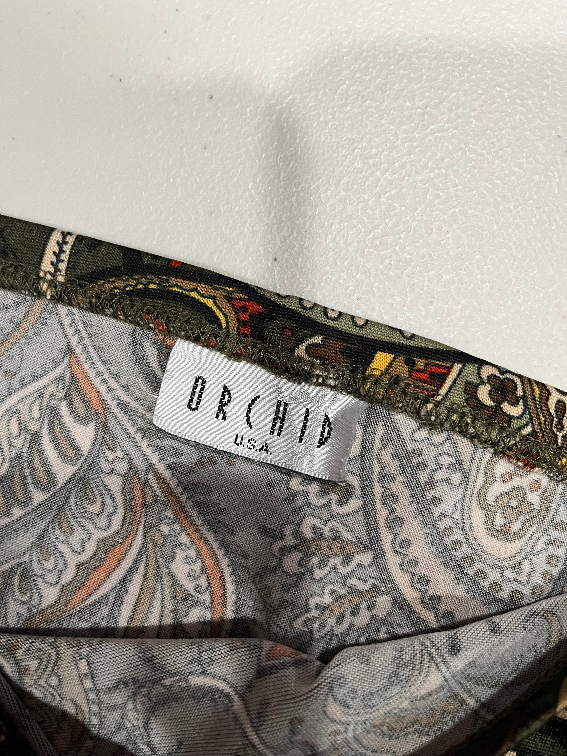 (XS/S) Vintage Bohemian Paisley Print Midi Skirt