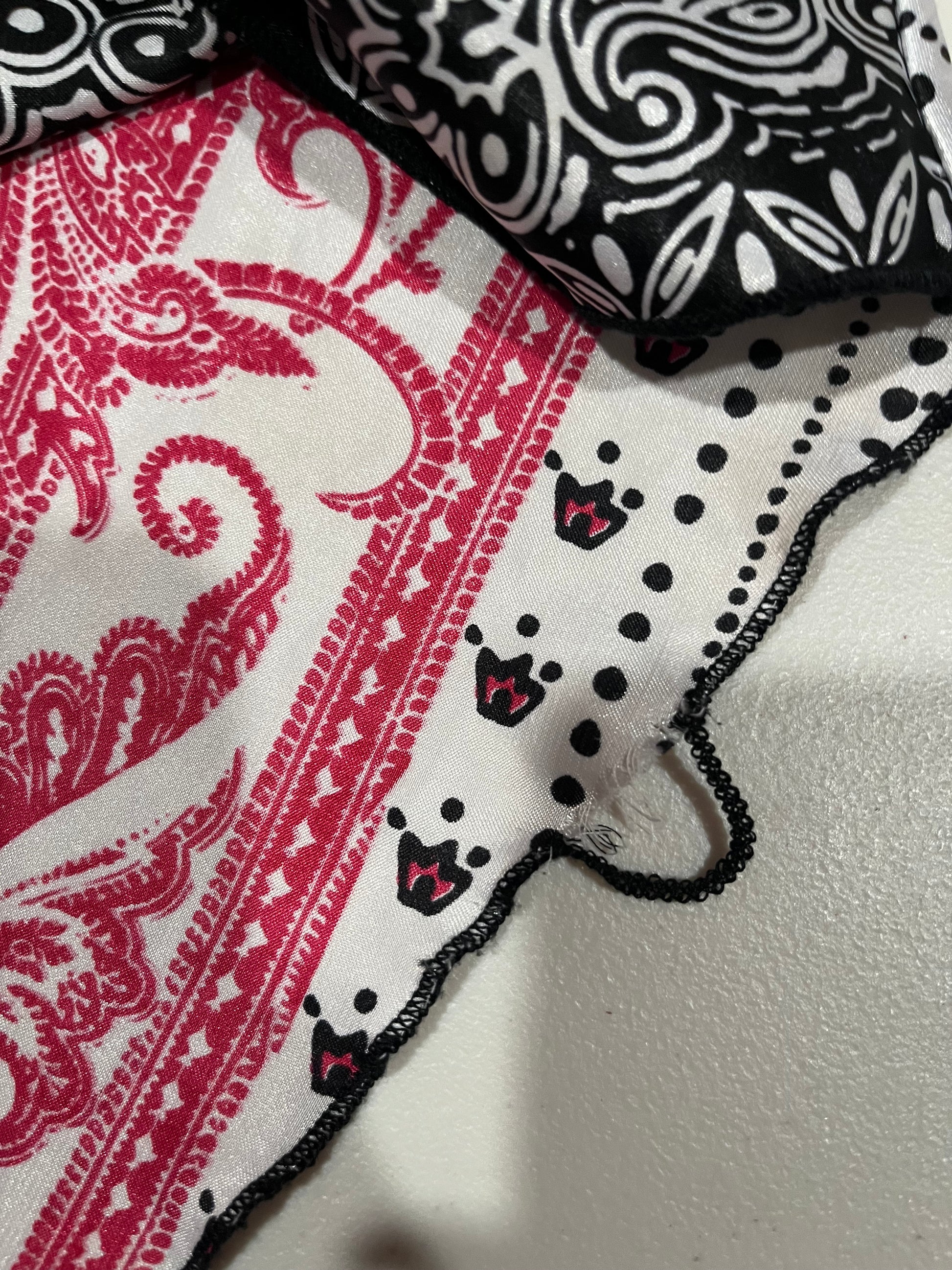 (XL) Vintage red & black asymmetrical paisley print top with silk black bow