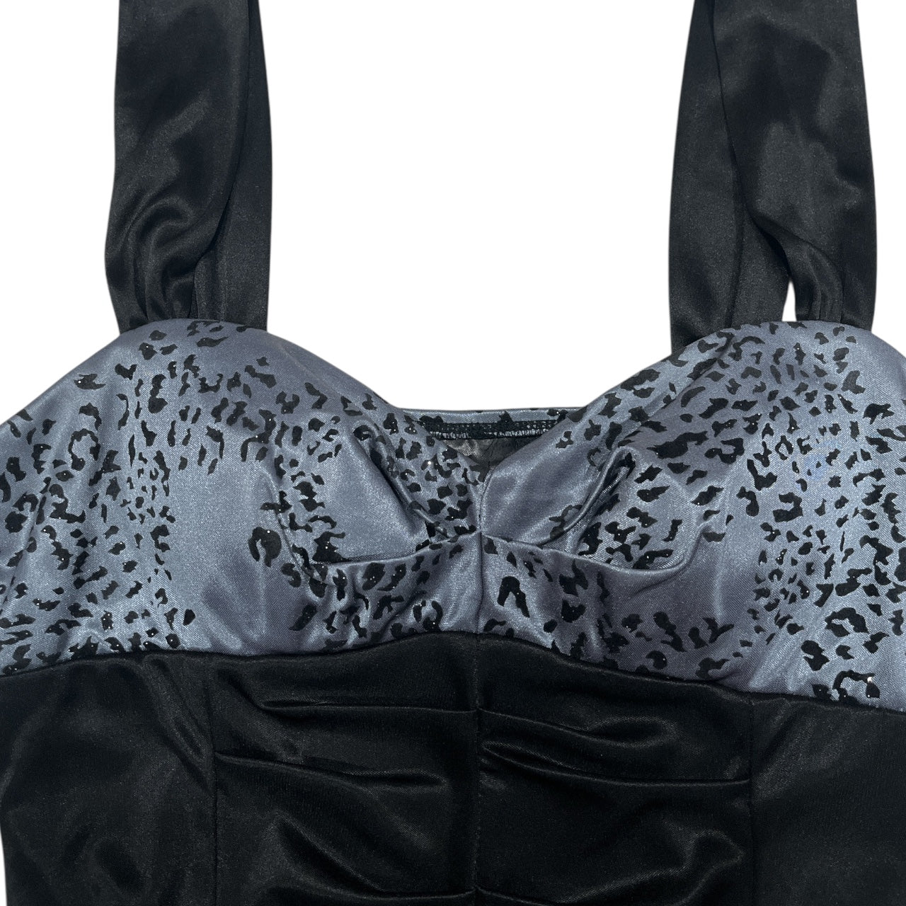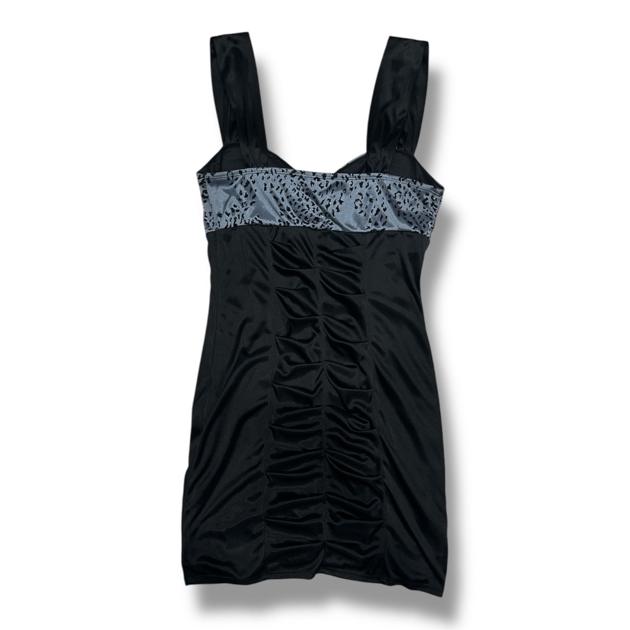 (M) 2000s Leopard Print Glittery Satin Mini Bodycon Dress
