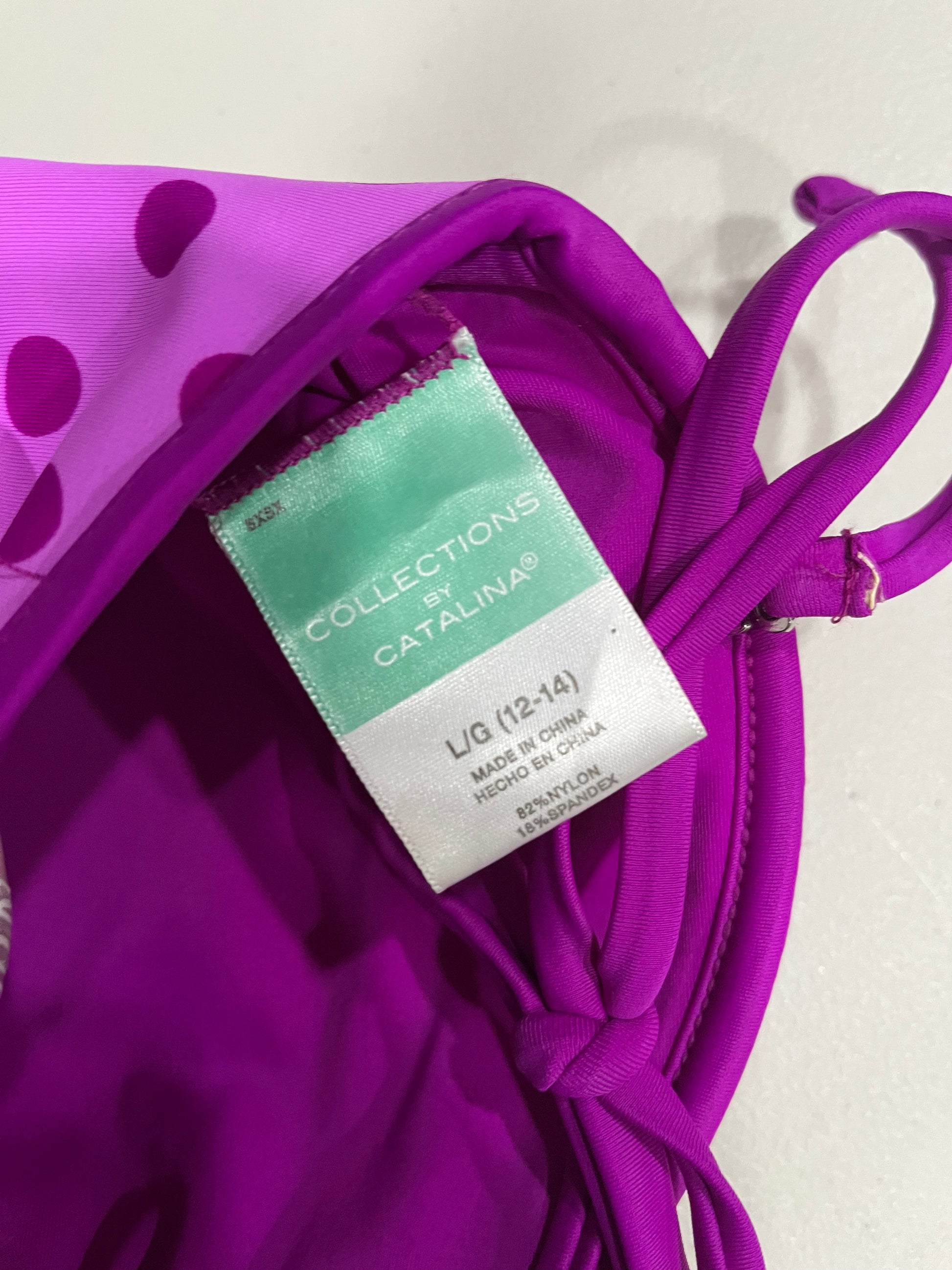 (L) Y2K Purple Polka Dot Halter Bikini Top