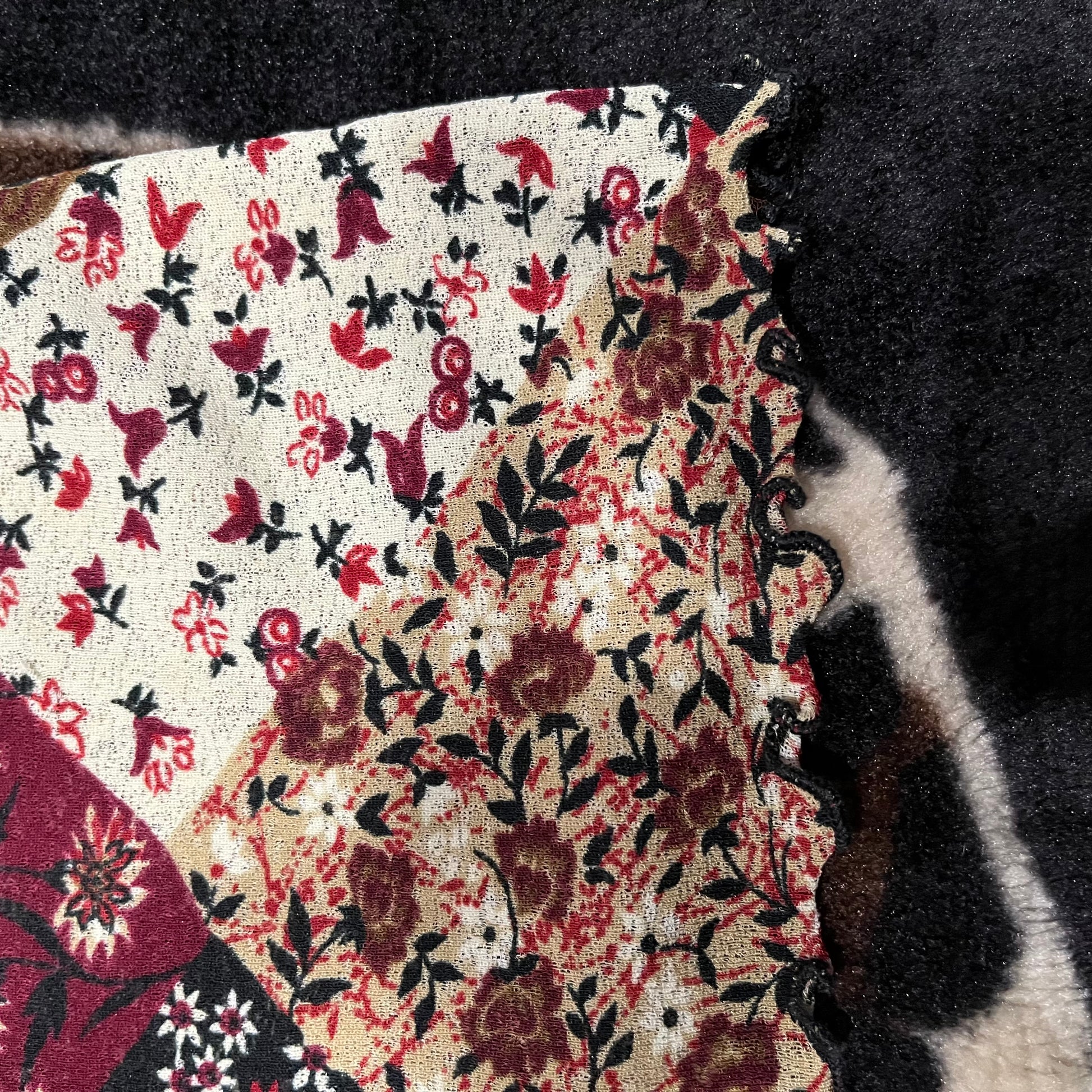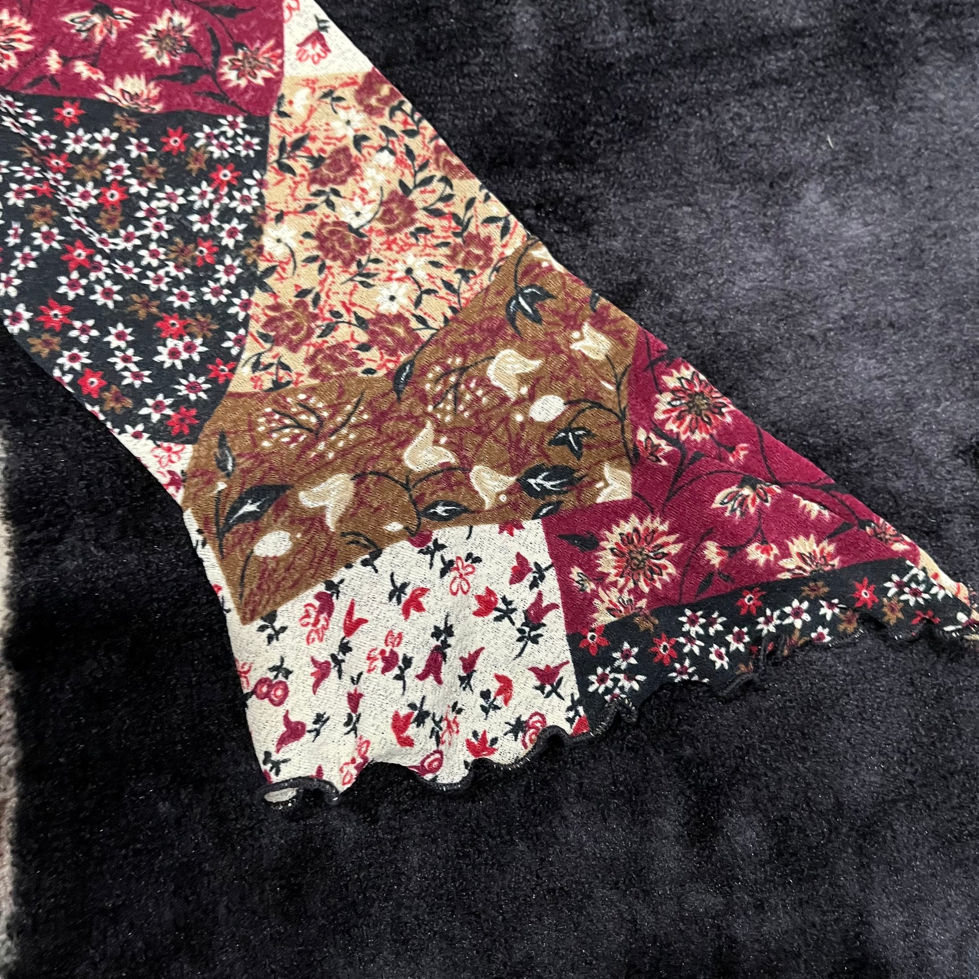 (M/L) VTG Floral Patchwork Bell Sleeve Lettuce Trim Top
