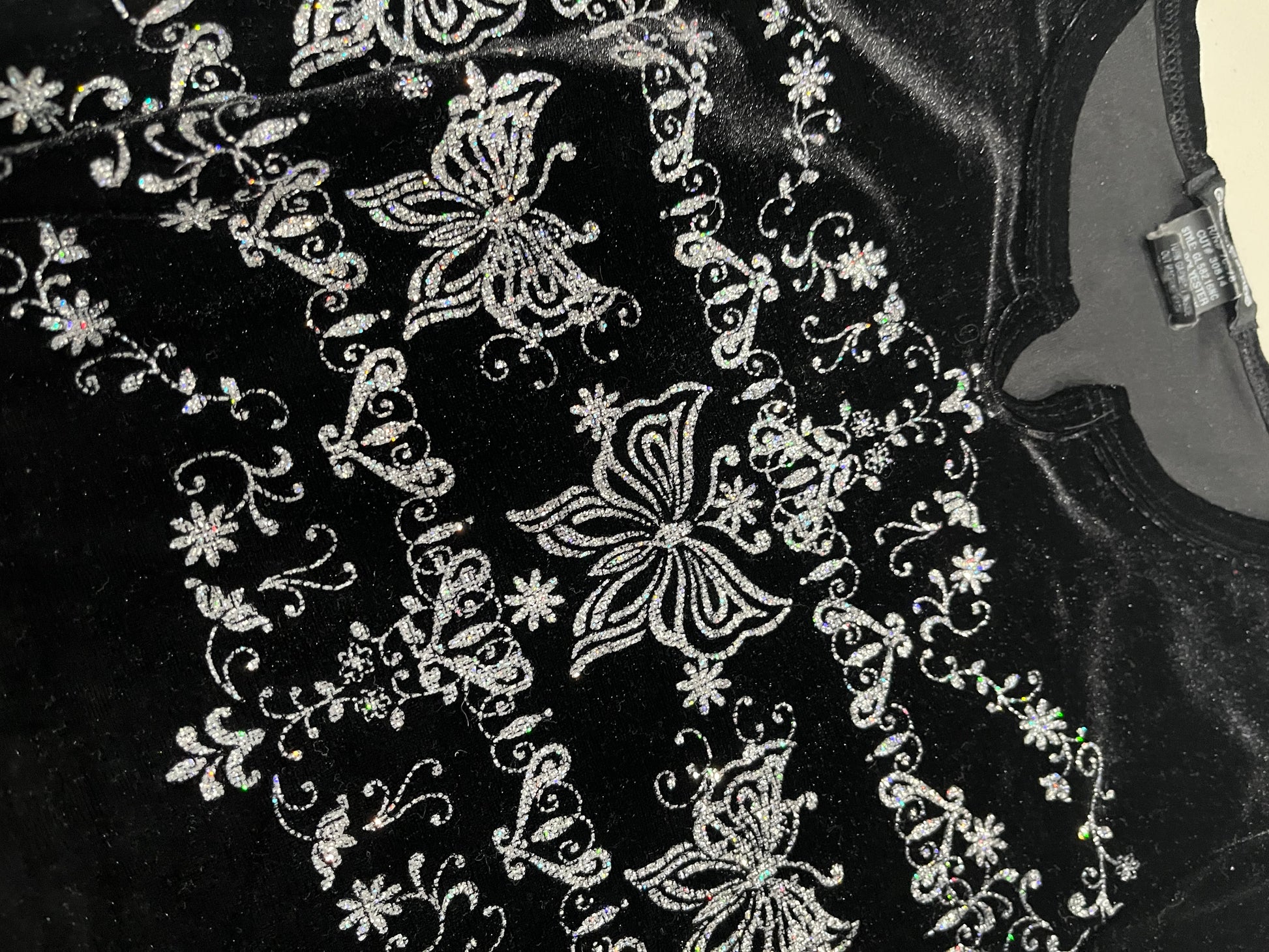 (S/M) Early 2000s Velour Butterfly Long Sleeve Top
