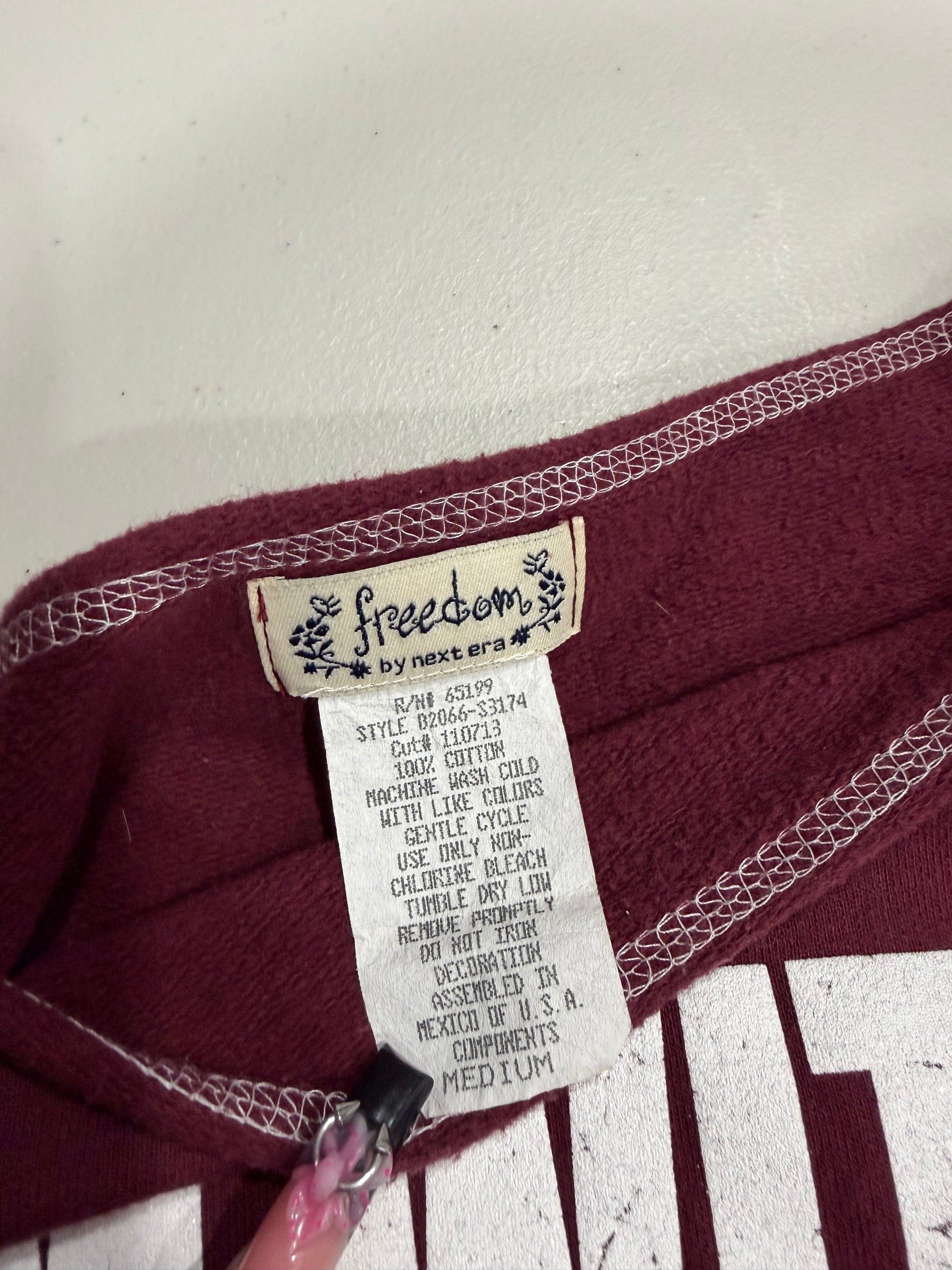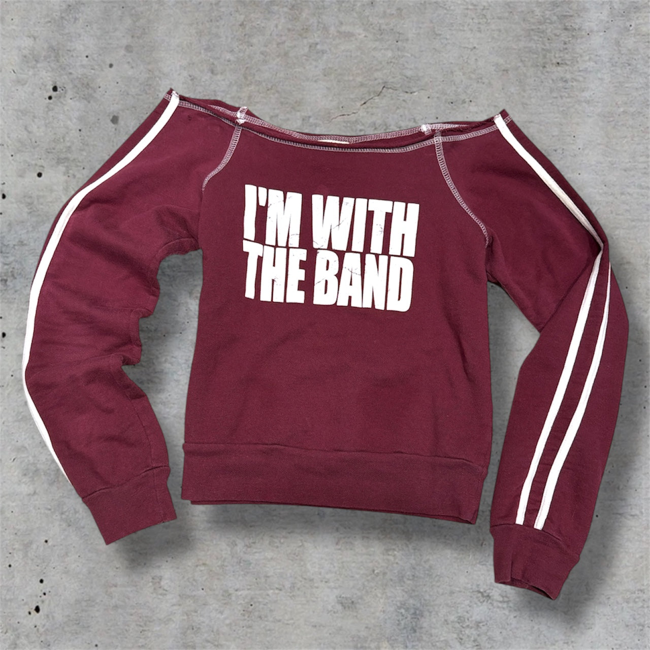 (S/M) vintage “I’M WITH THE BAND” off the shoulder double striped sleeve top