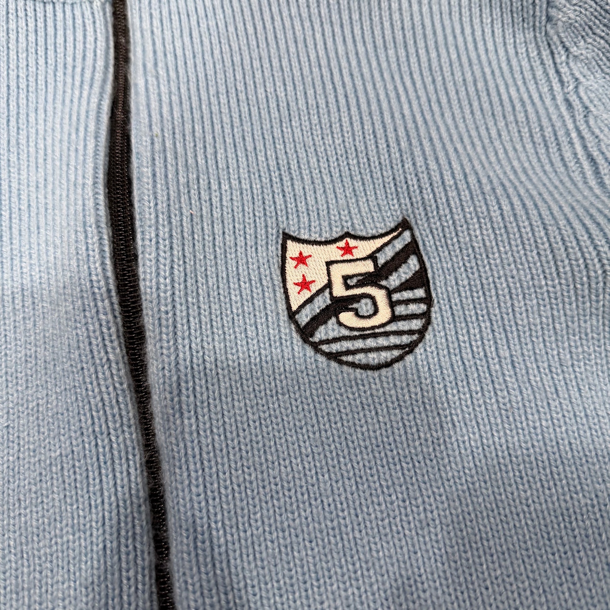 (S) vintage varsity embroidered striped baby blue knit jacket