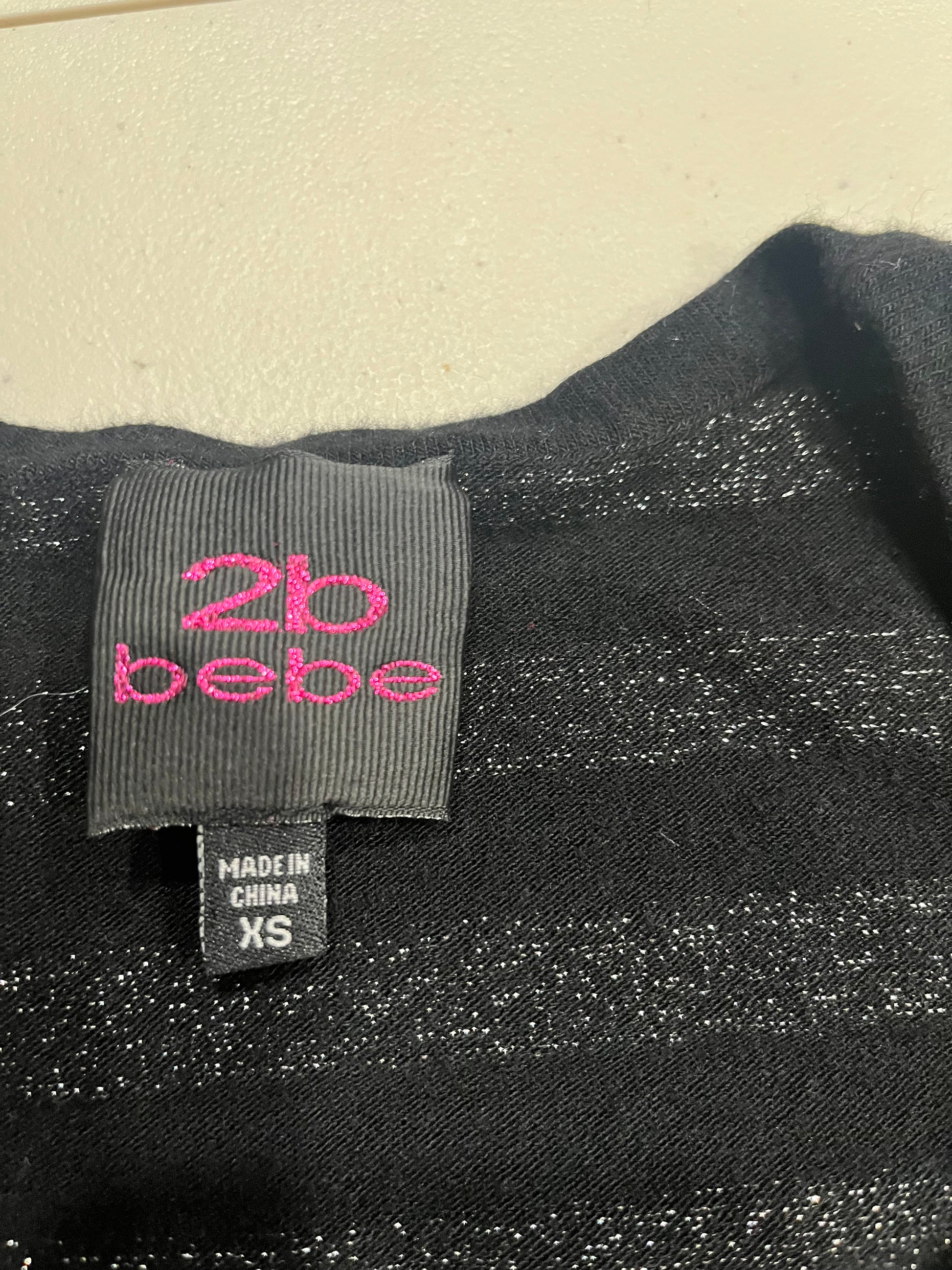 (XS/S) Y2K Bebe Rhinestoned Glittery Striped Cold Shoulder Top